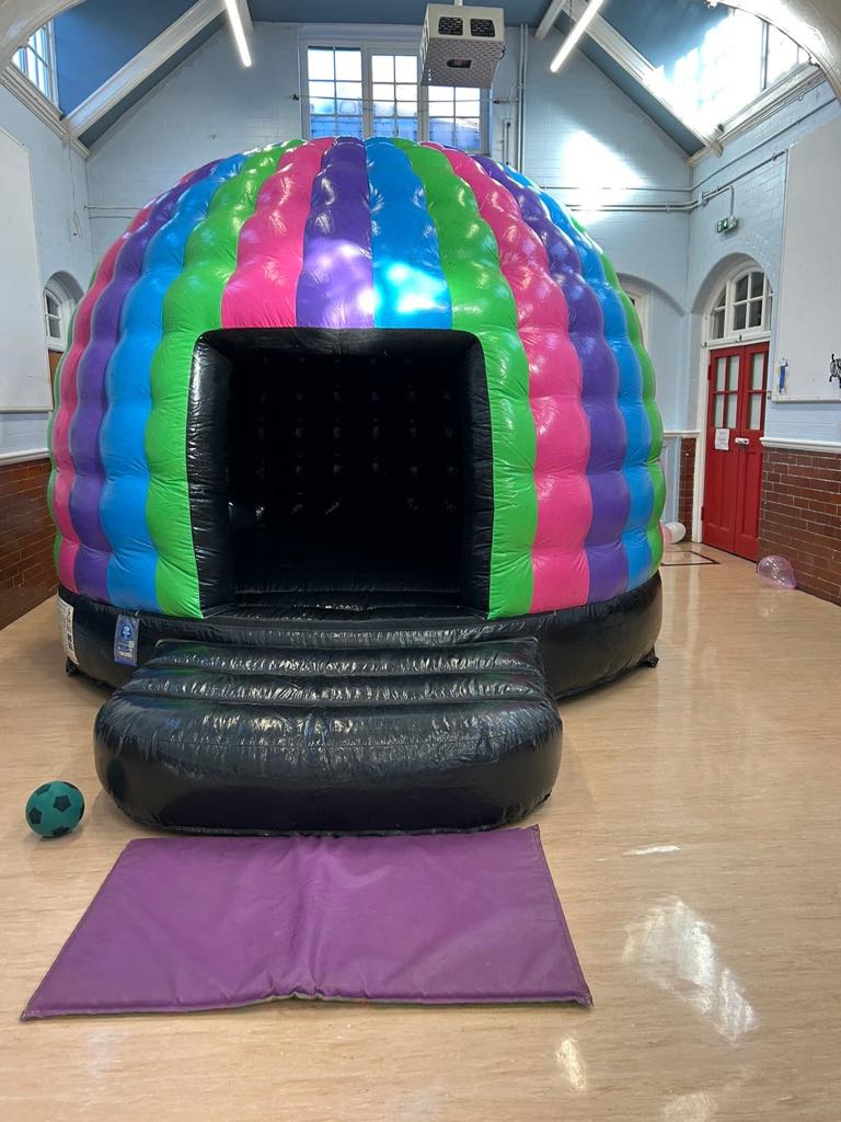 Our rainbow-coloured disco dome is the perfect addition to birthday parties, family gatherings, school events, and more. Let the music play and the lights dance as you bounce and groove inside this vibrant inflatable wonderland. 🎉
