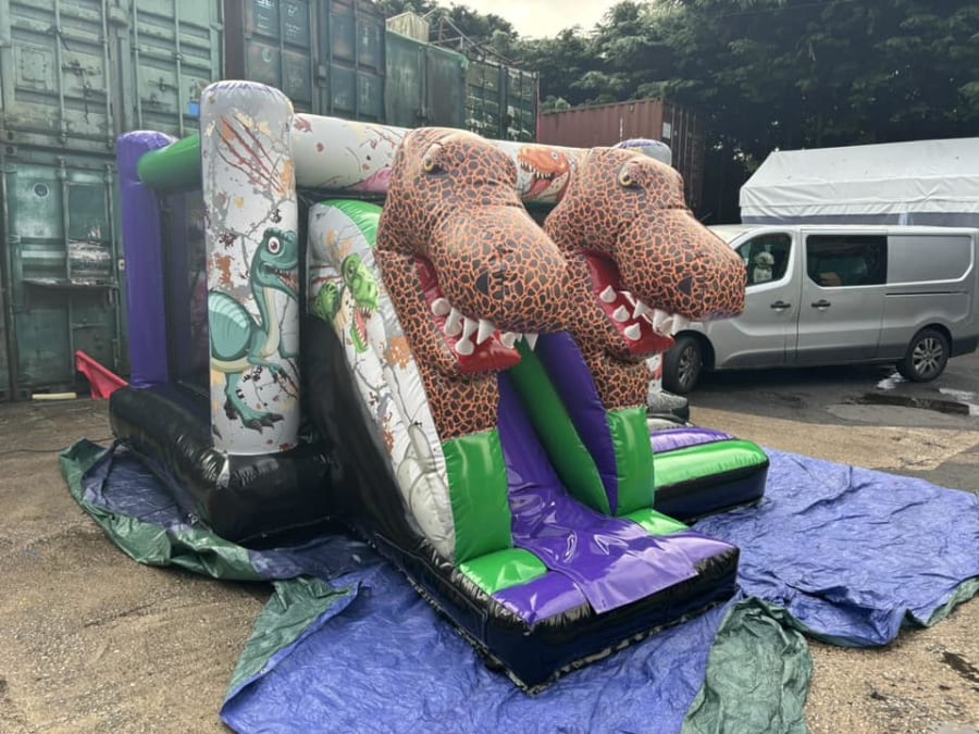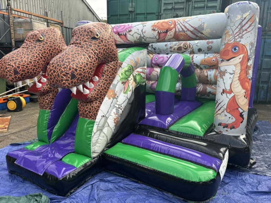 Our inflatable unit is proudly UK-manufactured and adheres to the UK and European inflatable safety specifications (BS EN14960). Designed to fit snugly under an 8ft ceiling, it's suitable for almost every indoor venue. The impressive digital prints with two 3D dinosaur heads are sure to captivate children and transport them to a dino wonderland!