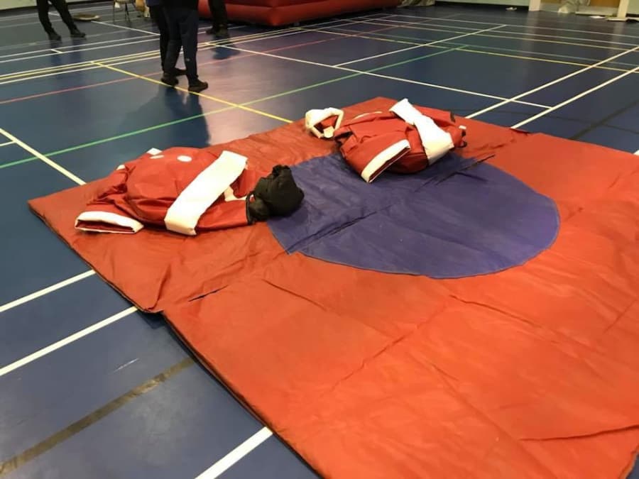 This product comes complete with padded sumo wrestling ring mate, 2 x neck brace, 2 x helmet and 2 x padded Santa Sumo Wrestling Suit.
