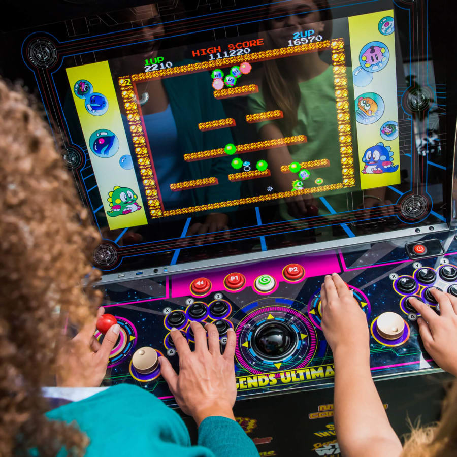 The cabinet itself is a full-size arcade-style cab with exciting graphics based on some of the licenced games within. The 24-inch HD LCD monitor presents your games in bright colour tones. Stereo speakers, angled downwards towards the player, recreate all those iconic game sound effects and music tracks. The Legends Ultimate really is The Connected Arcade.