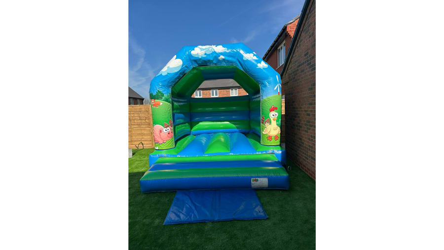 This bouncy castle is styled for children who love animals including farm yard animals.