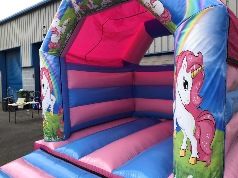 We've decided to add this gorgeous new artwork theme to our range to offer customers an alternate unicorn bouncy castle. This theme looks fantastic and perfectly compliments our light pink and light blue velcro bouncy castle.