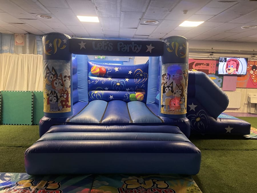 Indoor Bluey Bouncy Castle & Slide Combo Hire in Warrington, St Helens, Cheshire and Merseyside