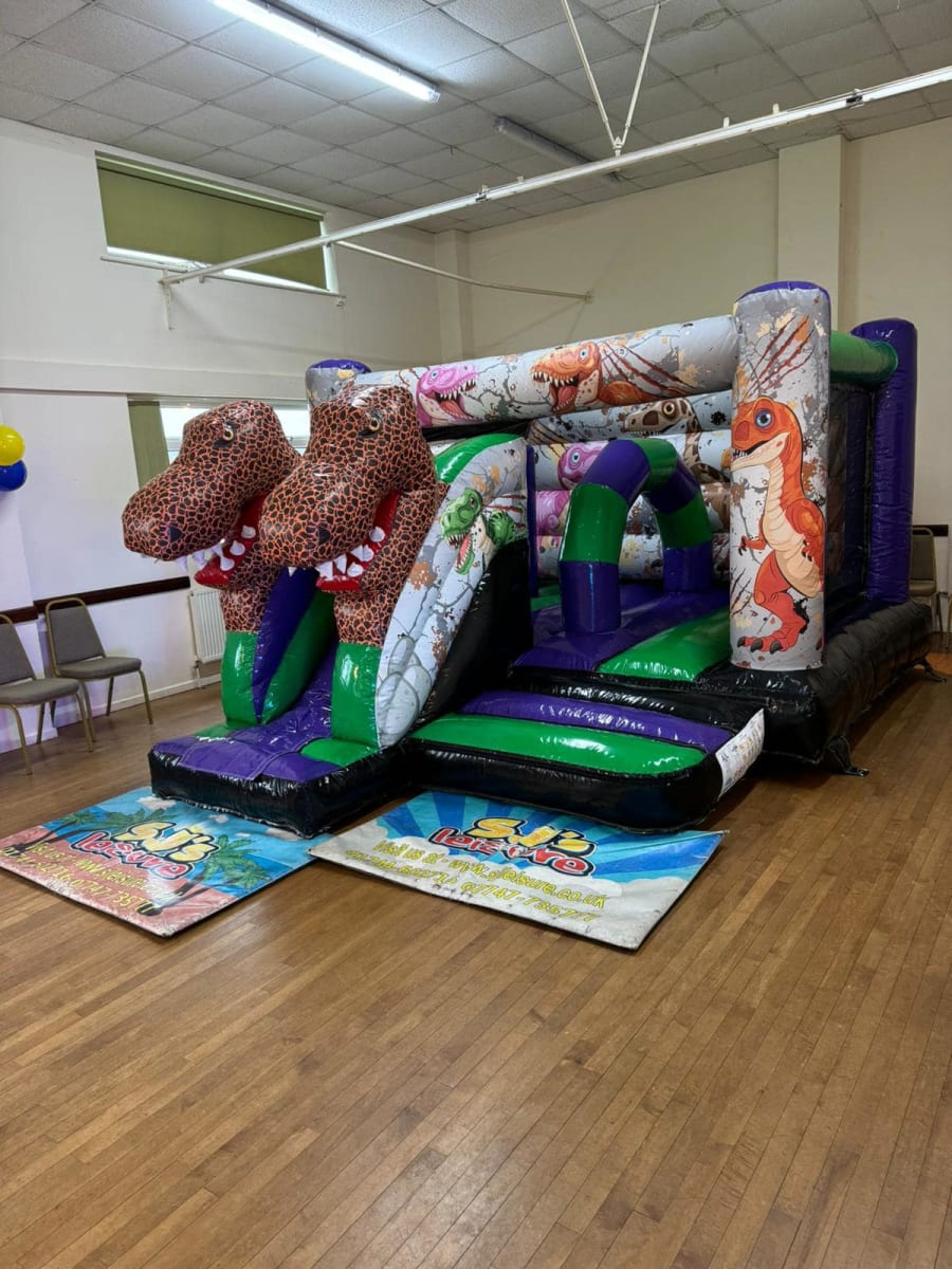 Our inflatable unit is proudly UK-manufactured and adheres to the UK and European inflatable safety specifications (BS EN14960). Designed to fit snugly under an 8ft ceiling, it's suitable for almost every indoor venue. The impressive digital prints with two 3D dinosaur heads are sure to captivate children and transport them to a dino wonderland!