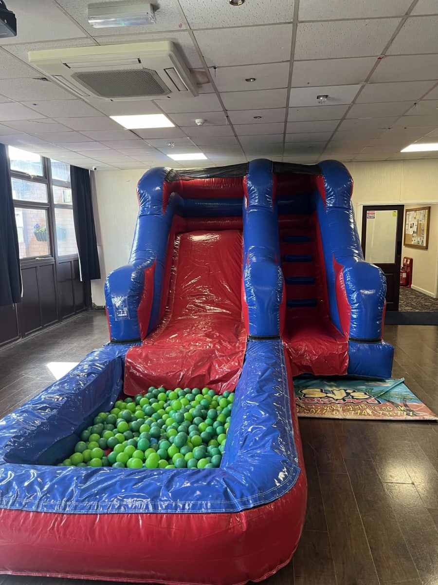 Our Blue & Red Party Slide With Ball Pool is suitable for children of all ages, making it ideal for birthday parties, christenings, school fun days, nursery fetes, and more. It is designed and manufactured in accordance with the UK and European inflatable safety standard (BS EN14960), ensuring a safe and enjoyable experience for everyone.