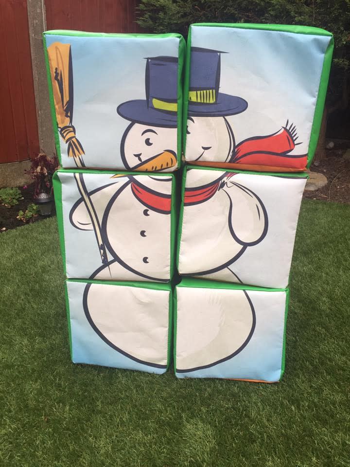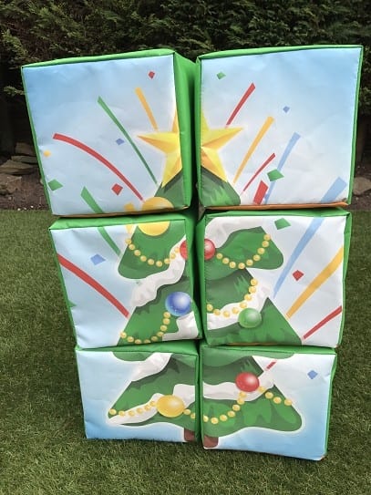 This cute little build-a-snowman / Christmas tree is great for toddlers to keep themselves amused at your event. The product contains 6 soft play square blocks which piece together to make a snowman figure.